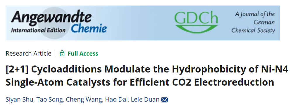 近日,西湖大学理学院、人工光合作用与太阳能燃料中心段乐乐团队在Angew. Chem. Int. Ed.上发表了题为“[2+1] Cycloadditions Modulate the Hydrophobicity of Ni-N4 Single-Atom Catalysts for Efficient CO2 Electroreduction”的研究成果。