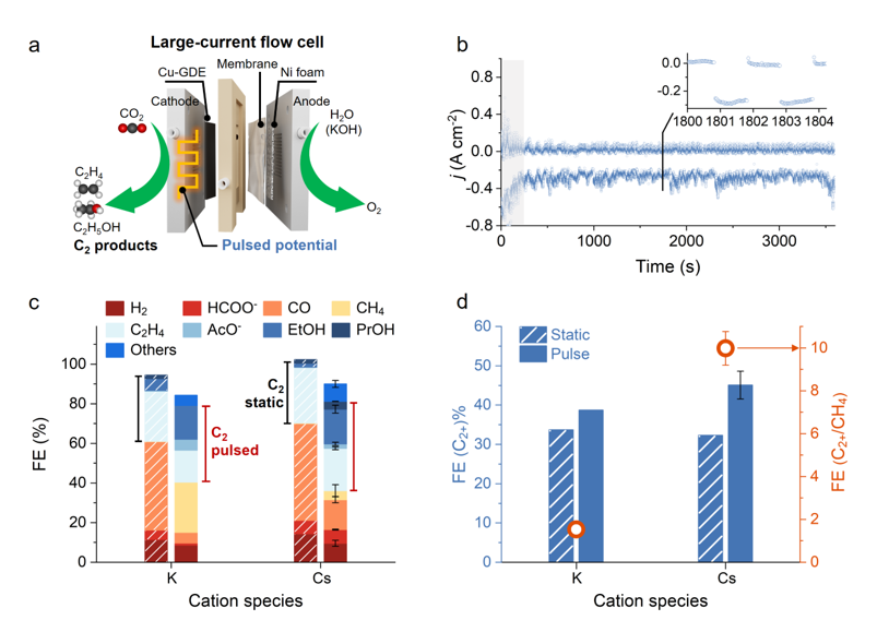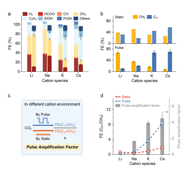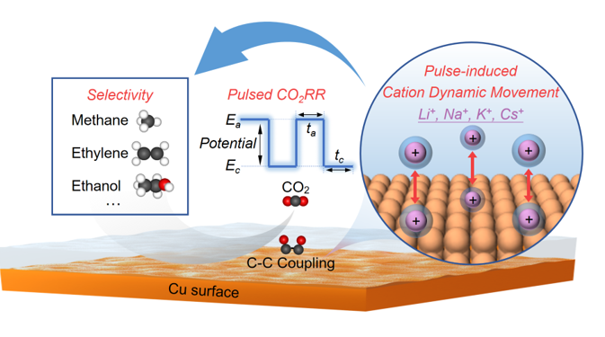 本工作聚焦于脉冲点催化过程中阳离子的动态调控及其对C2+产物选择性的影响。