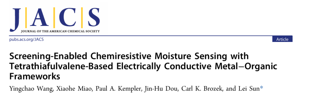 近日,西湖大学理学院孙磊团队在JACS上发表了题为“Screening-Enabled Chemiresistive Moisture Sensing with Tetrathiafulvalene-Based Electrically Conductive Metal−Organic Frameworks”的研究论文。