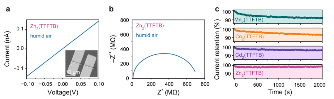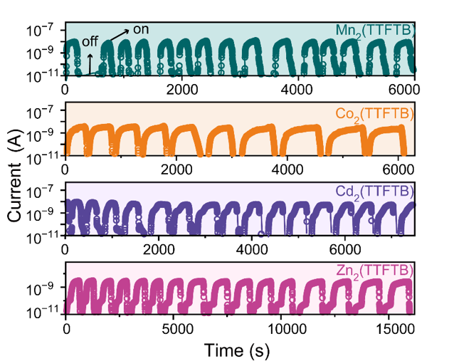 图6. 对Zn2(TTFTB)特有电学特性的研究