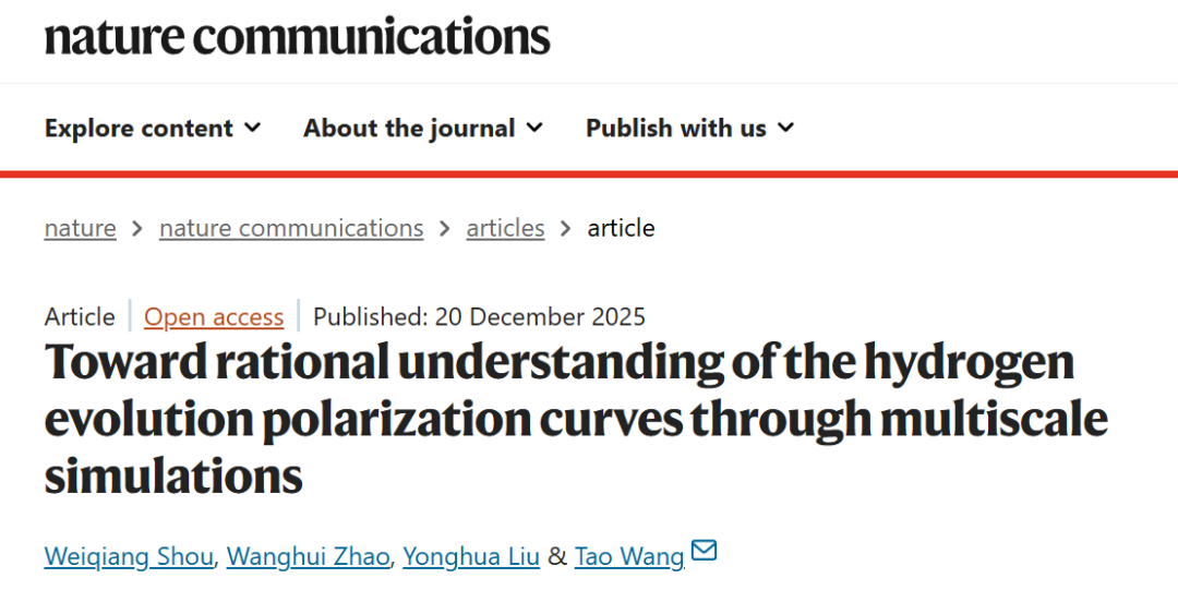 该研究成果以“Toward Rational Understanding of the Hydrogen Evolution Polarization Curves Through Multiscale Simulations”为题发表在Nature Communications上。