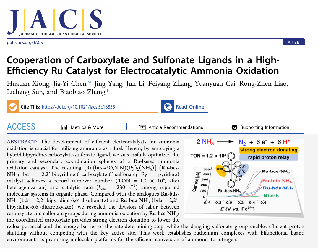 Huatian Xiong, Jia-Yi Chen,* Jing Yang, Jun Li, Feiyang Zhang, Yuanyuan Cai, Rong-Zhen Liao, Licheng Sun, and Biaobiao Zhang*, Journal of the American Chemical Society,. https://doi.org/10.1021/jacs.5c18855