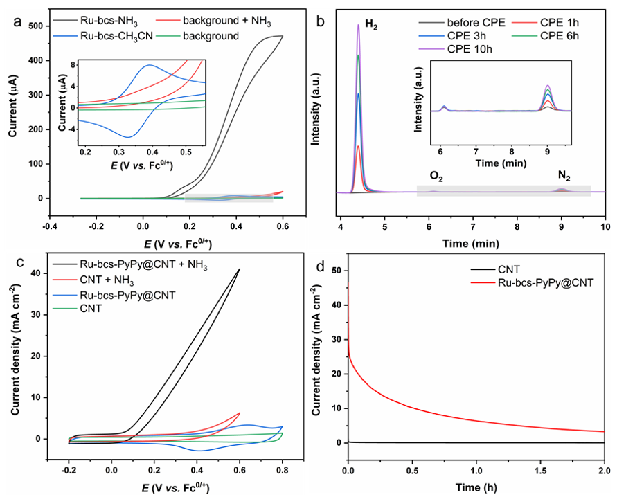 图2.Ru-bcs-NH3及其异相化后(Ru-bcs-PyPy@CNT)的电催化氨氧化性能图